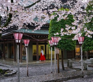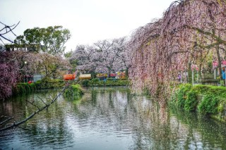 Okay, the last stop was also very pleasing and that was the visit to the Mishima Taisha Shrine where there are some 200 Sakura trees, including the weeping variety. While still drizzling, the Sakura were beautiful to behold, especially the pathway with red lanterns to the main shrine and around the lake. So many photo opps but we only had 30 minutes here. Sigh.