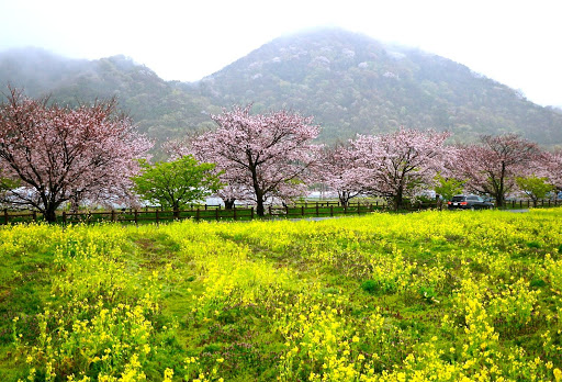 Moving on to the highlight of the tour, we journeyed for another 15 to 20 minutes before we started sighting greenhouses amidst the very picturesque rapeseed flowers and wild Sakura along the way.