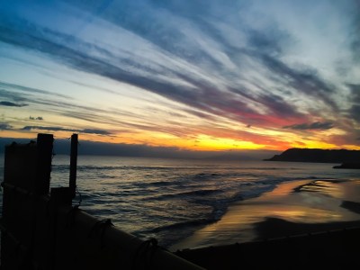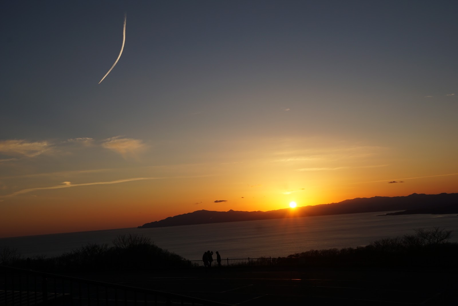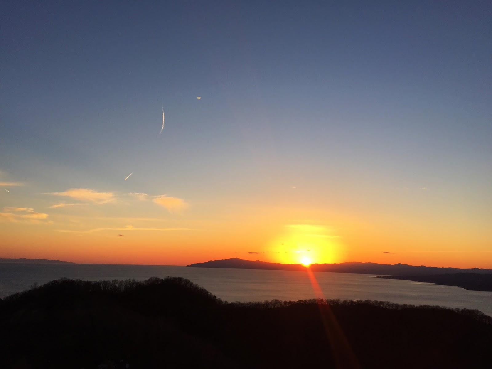 | Spectacular sunset over the sea from Yunohama Hotel’s Onsen |