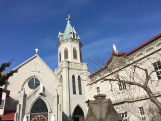 We make it a point to try to attend mass in whichever city we are in over a weekend. Partly to assauge the Catholic guilt in us as well as a real interest in the architecture of churches overseas. So from the morning market, we hopped on a tram and dropped off at Jiujigai. From there, it was a pleasant stroll to the left (uphill again!) to where the Catholic church is. Opposite the Catholic church is the oldest Russian Orthodox Church in Japan but we did not have time to explore the grounds, only pausing long enough to snap a couple of shots.