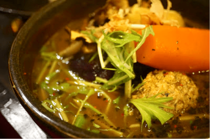 Soup curry is a Hokkaido thing. It is basically a spicy soup, with meat and vegetables or just vegetables and at Tsubara Tsubara, you can customise the levels of spiciness according to your ability. We had soup curry in Chitose airport and were hankering for more of it. So when Morino of Kimamaya heard about this, she immediately made a booking for us at Tsubara.