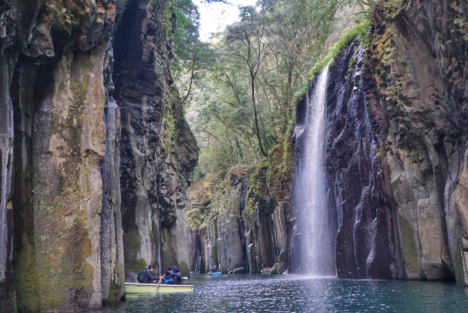 Takachiho Gorge 高千穂峡 – this is probably one of the most iconic attractions in Kyushu and it really is a must-go. The place itself, is right out of the photos that you find of it online and there are 2 experiences that you ought to try out. The first is getting into a boat and rowing around the gorge and the second is trying your hands at catching the Nagashi Somen water slide noodles in the Chiho no Ie Restaurant there. It is a fairly winding road up to the Gorge, with some sharp turns along the narrow 2-way road. So drive carefully and make sure you use the convex mirrors at every bend.