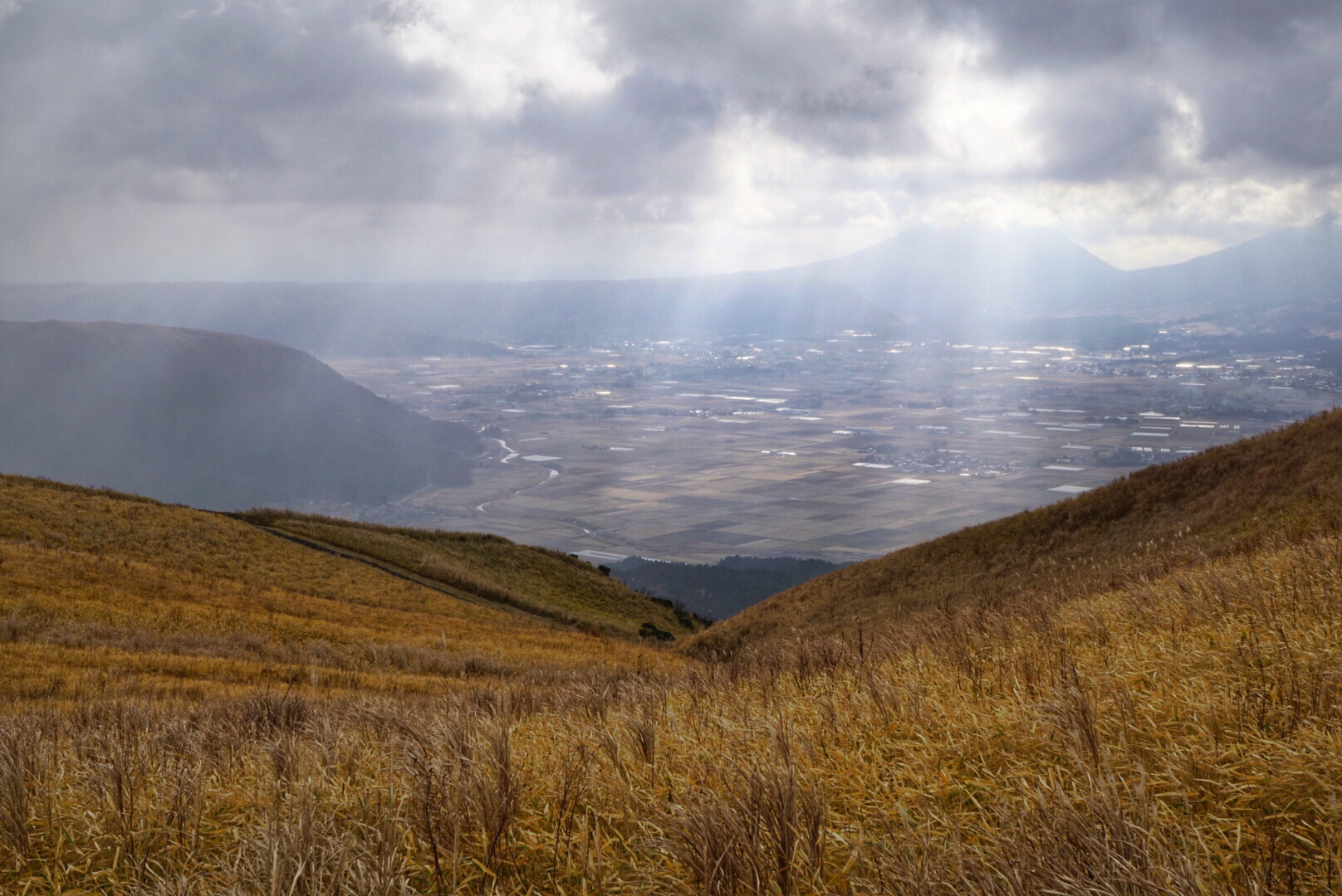 Daikanbo 大観峰 – if you are in the Aso area, this is worth taking a drive to. From the lookout right at the top, you can take in an entire 360-degree view of Mount Aso’s caldera. We were lucky to witness some glorious landscapes when the veil of clouds parted way to let in the resplendent sunbeams.