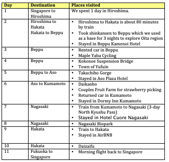 Even then, we found that it would be too much movement tocover the entire island in one trip so eventually, we settled on North Kyushuonly. This was our travel itinerary to North Kyushu in mid December 2017 withour teen children:-