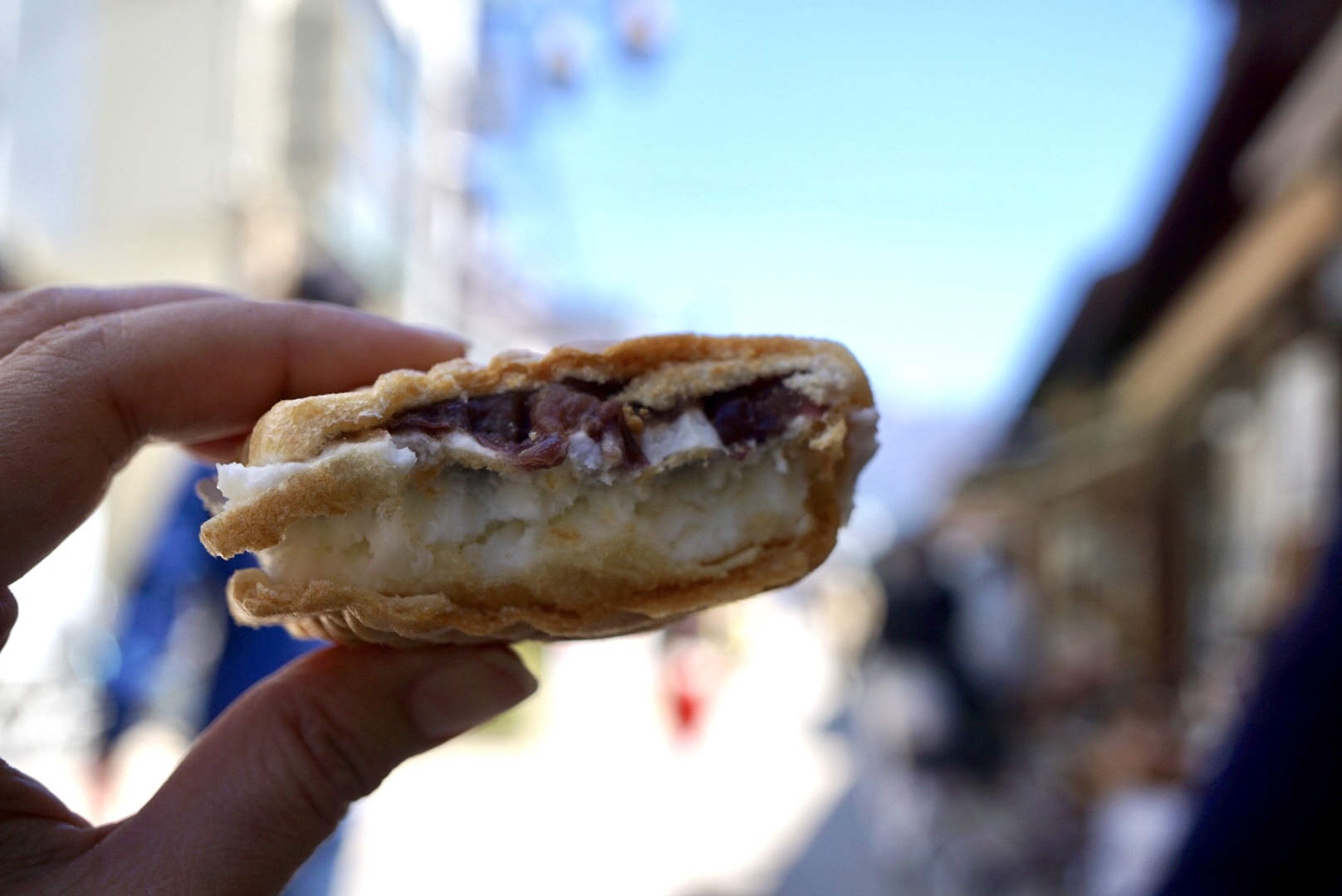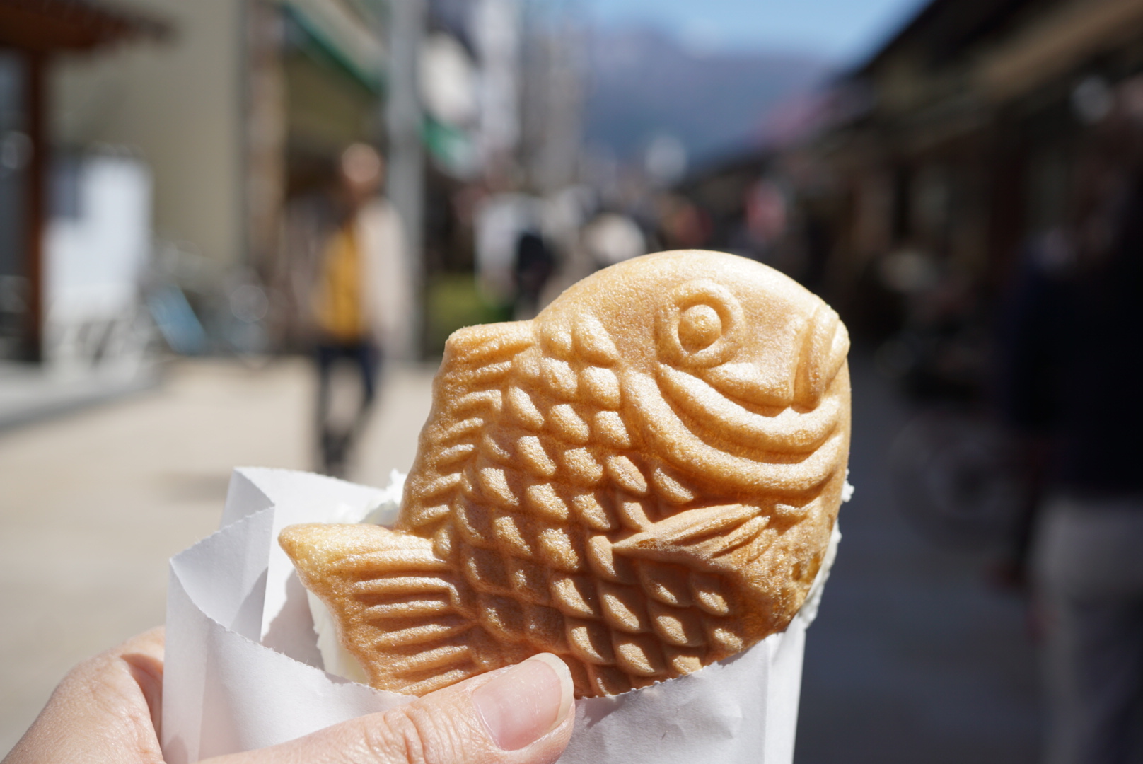 As if I could not be happier, I chanced upon another taiyaki seller further down the street. While not as famous as Taiyaki Furusato, this one sold taiyaki ice which was a fish-shaped crispy wafer with vanilla ice cream and red bean sandwiched in between. If you ask me, this was almost as good as the steaming hot one. Best to try both so that you savour the hot and the cold 🙂