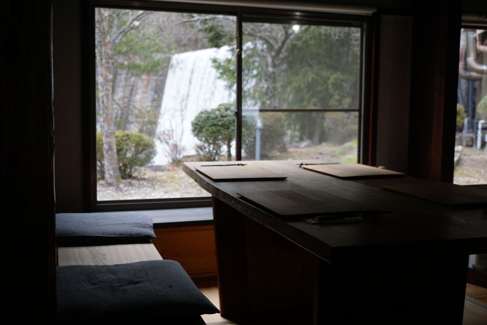 To get back onto the Nakasendo Trail, we took a 60 minue train ride from Matsumoto to Nagiso where we had booked a unique ryokan stay by a waterfall. Takimi no Ie (滝見の家) or Takimi House, turned out to be the best stay we experienced on this trip and one of the best accommodation experiences I have had in Japan. Owned and managed by Koike-San and his wife, the family home has been welcoming guests for 30 years since his return from Tokyo as a chef. Nestled amongst cedars with views of the waterfall from the onsen (yes, you have your own onsen both indoors and outdoors) and the main dining area, the whole house is your own to lounge about in as Koike-San only takes in one party at a time, up to a maximum of 8 pax.