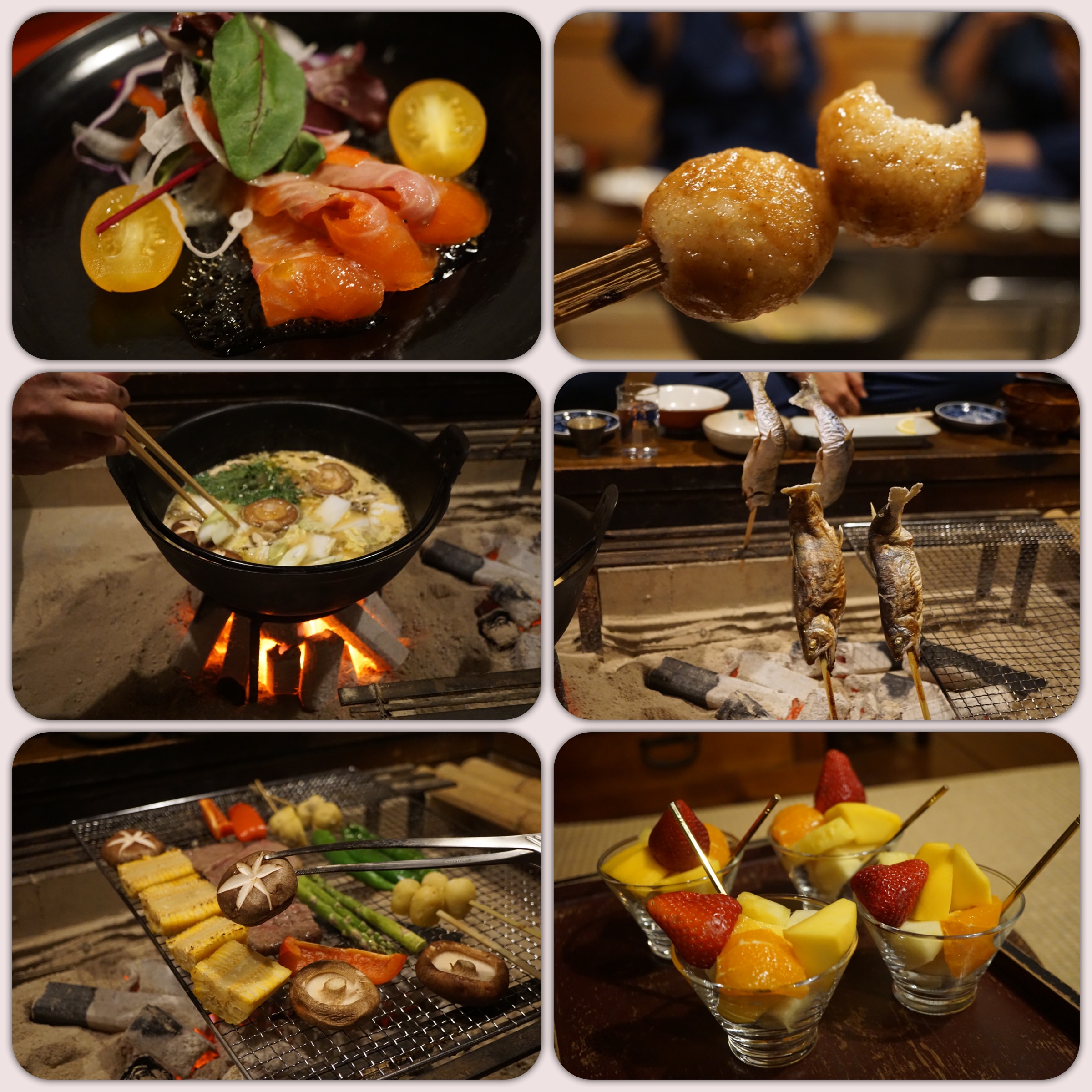Dinner was a lavish, multi-course affair with super generous portions of meat and vegetables for the nabe (hotpot) and barbeque over the traditional irori, which is a sunken hearth of charcoal. Owing to dietary restrictions of one of us aunties, Koike-San thoughtfully provided duck but reserved slivers of wild boar to be cooked in the nabe after we were done with the duck. The soup stock at the end was brimming with such rich umami goodness that we were totally stuffed even before embarking on the grilled wagyu.