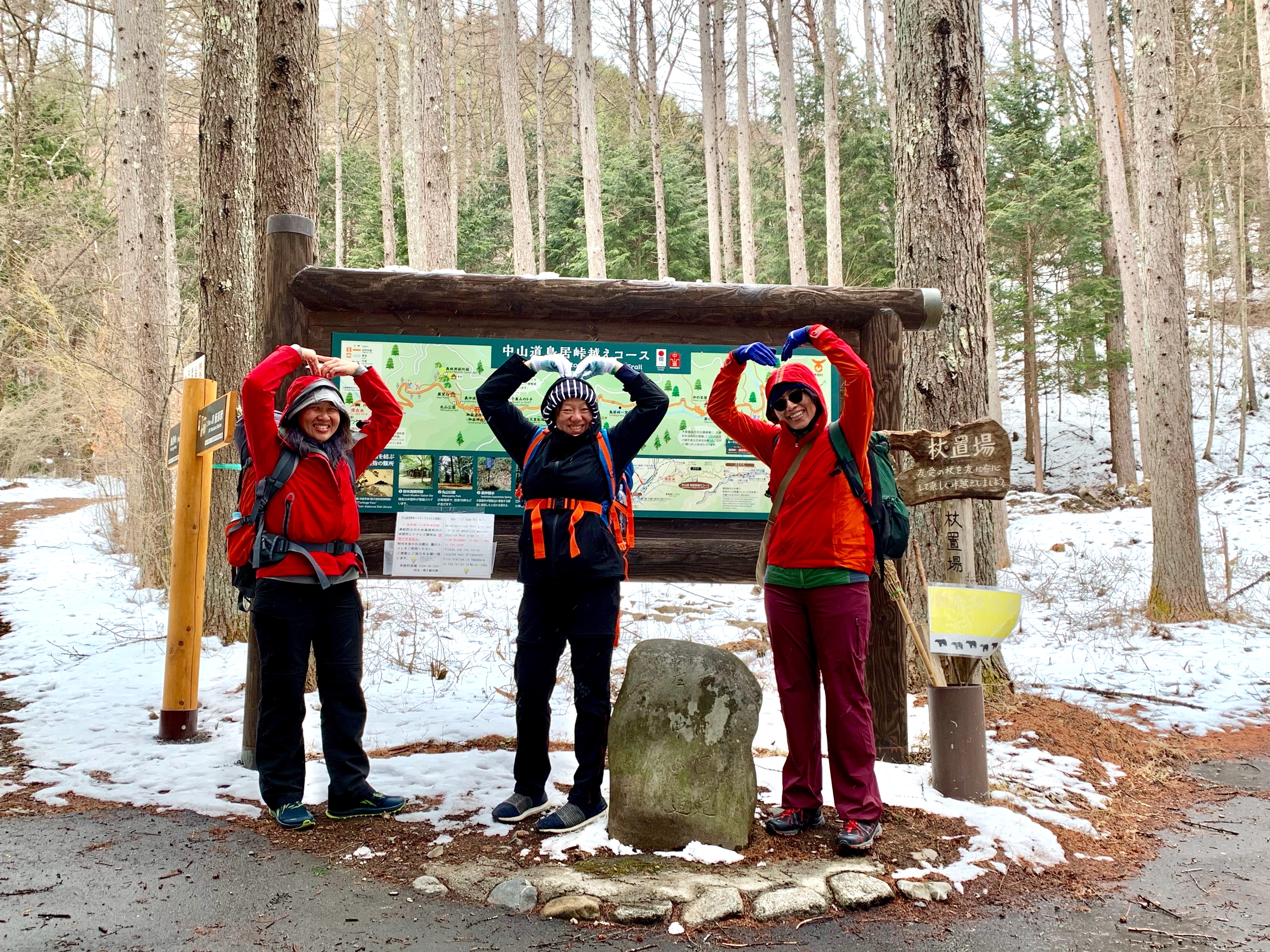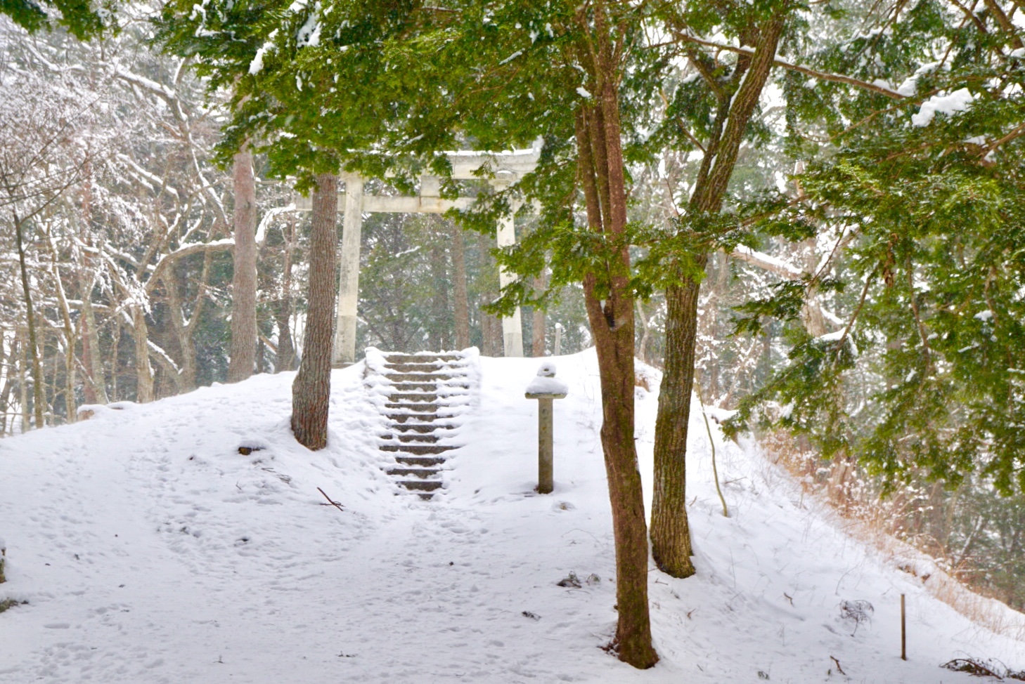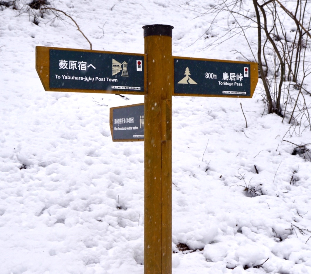 The well-posted signs to the Torii-Touge Pass led us along the main road; some construction uncles pointed us towards a small tunnel and from there, it was to the start of a forested area. Traipsing on, we snapped wefies and marvelled at how pretty the forest looked especially with snow flurries starting to drift down.