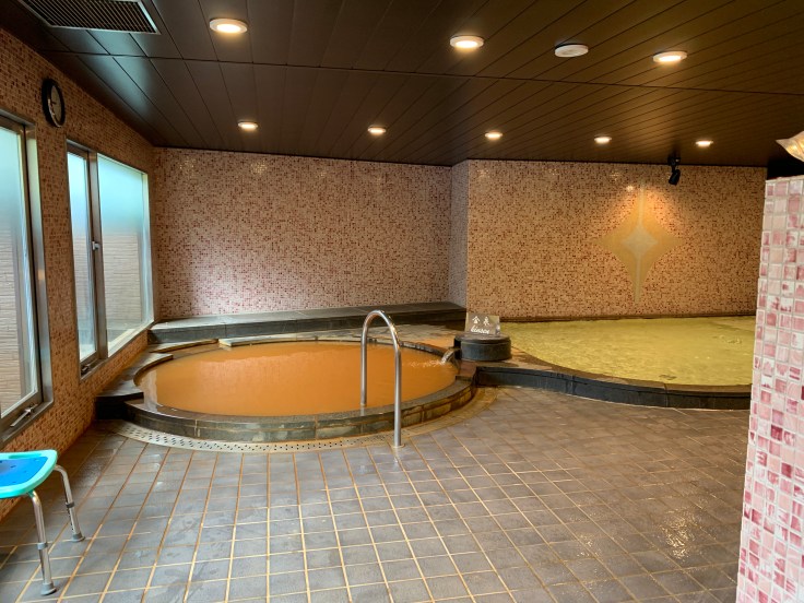 However, to the onsen we must, even though we were suffering from food coma by then, as Arima is famed for its “Kinsen” 金泉 (Golden waters from the oxidation of the rich iron minerals) and “Ginsen” 銀泉 (Silver waters with traces of radium). Taiko no Yu, which is akin to a hotspring theme park with its 10 pools, is conveniently accessible for free for guests of Arima Kirari Hotel. The hotel also has its own onsen with a Kinsen and a Ginsen only for guests and these were less crowded so we headed there for a last dip before leaving the next day.